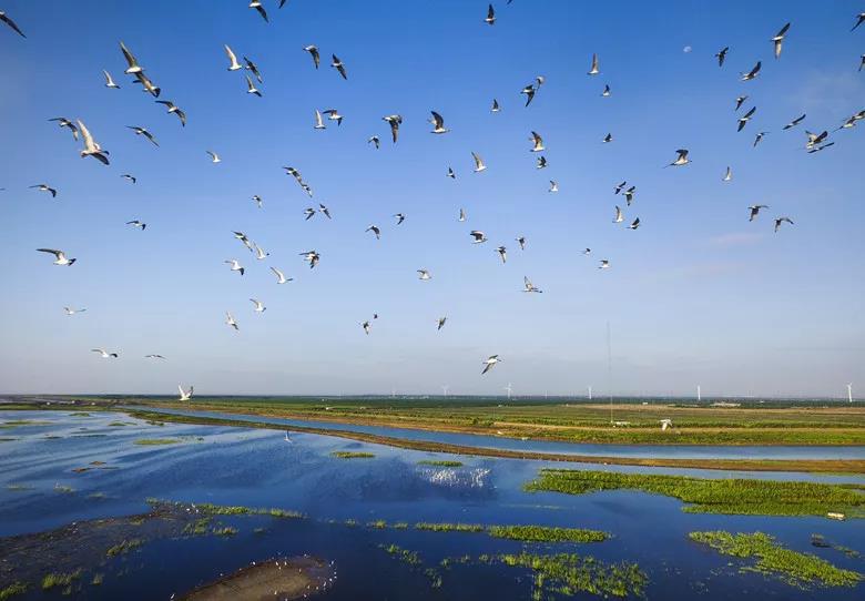 崇明東灘位于上海市崇明島的最東端,保護區面積為326平方公里,屬長江口典型的河口濕地。崇明東灘鳥類自然保護區記錄到的鳥類有265種,其中依賴濕地生活的水鳥140種,國家重點保護的34種;列入中日、中澳政府間候鳥及其棲息地保護協定的鷸類分別為156種和54種。遷徙季節在崇明東灘逗留的有8個涉禽的數量超過世界種群數量的1%,在中國大陸回收的澳大利亞環志的鳥類80%來自崇明東灘。
