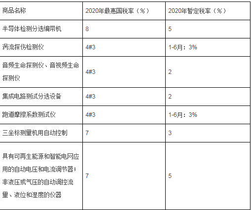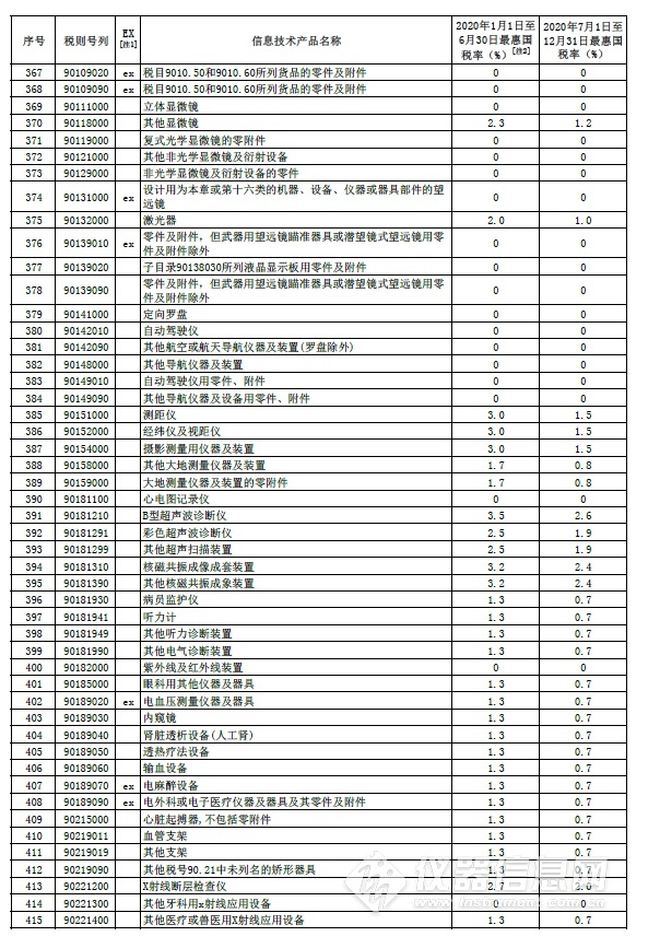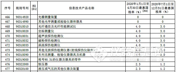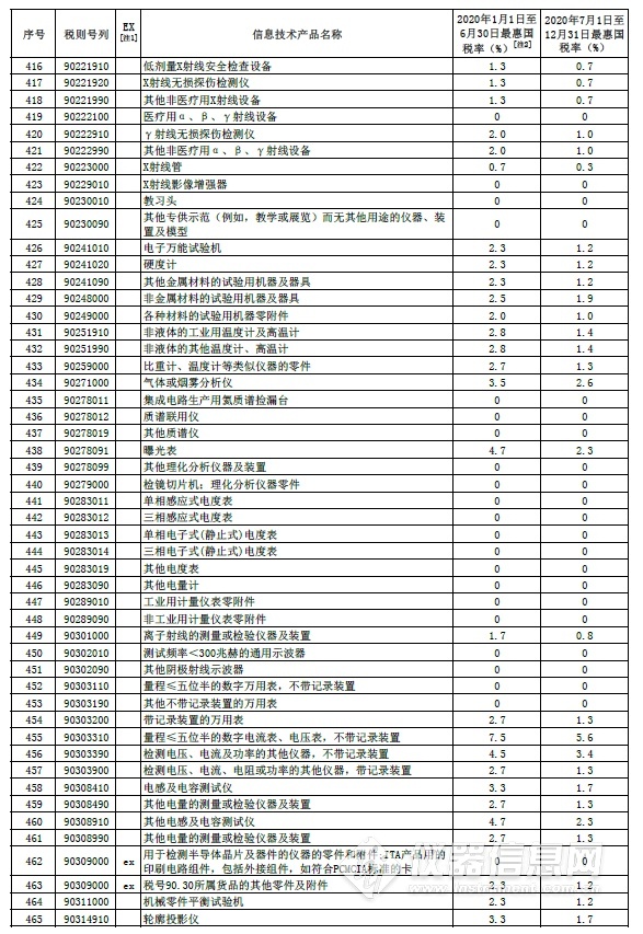 部分信息技術(shù)產(chǎn)品最惠國稅率表中的儀器