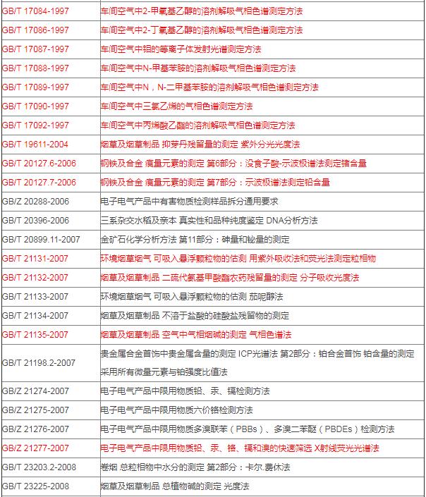 統(tǒng)計(jì)發(fā)現(xiàn),本批廢止的標(biāo)準(zhǔn)中約有200項(xiàng)儀器方法,主要為色譜、光譜、氣質(zhì)聯(lián)用分析方法,且以汽車行業(yè)車間空氣檢測(cè)為主。匯總?cè)缦拢?/span>